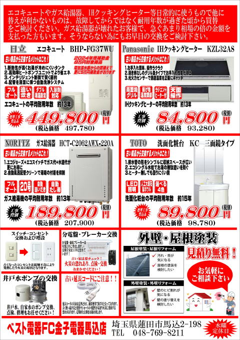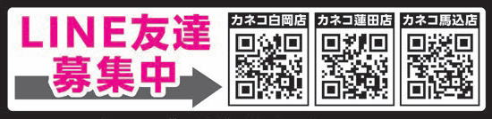 カネコ馬込店 〒349-0114 蓮田市馬込2-198 TEL.048-769-8211 カネコ蓮田店 〒349-0123 蓮田市本町4-4 TEL.048-768-0210 カネコ白岡店 〒349-0217 白岡市小久喜1153-2 TEL.0480-92-6371